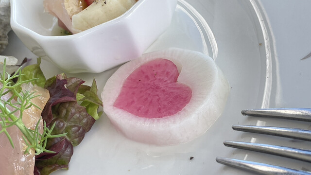 シェフとオーナーは花粉症になった事がないと言う。イマドキ珍しい。それは長期にわたるハーブ・野菜食に起因する可能性が大きいと思うけど、先天的に花粉に対して過敏ではないか、症状に対して鈍感である可能性も否定出来ない^_^。