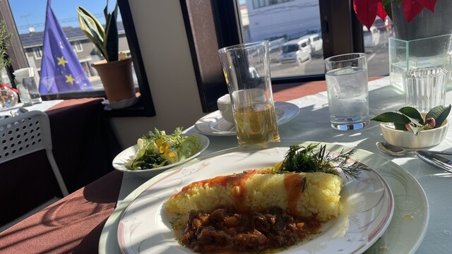 太陽の高さは最低高度に達して、ランチタイムの店内の中の列のテーブルの端まで照らしている。冬は暗いと言うイメージがあるけど、窓さえ開いていれば室内を太陽が照らすぶん、明るい雰囲気になる。テーブルCの西側の窓からは南中を過ぎて降下し始めた太陽が見えるけど、直視しても目が眩まないくらいの弱々しさ。