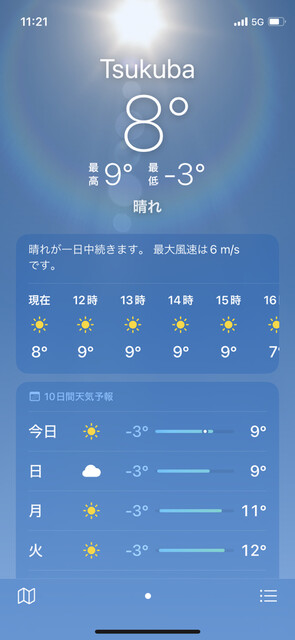たけなわという言葉は盛りとか佳境と言う意味だと知っていたけど、こう言う字で語源だったと言うのは今検索して初めて知った^_^。春や秋を修飾するけど、酷暑や厳冬にはまず使わないのは、好ましいもの事のピークと言うニュアンスがあるからだろう。しかし自分は冬の盛りと言うのはキリッとしてして嫌いではない。つくばでは昨夜はちらりと初雪、その後快晴で放射冷却、今朝は今季最低のマイナス5℃を記録した。冬たけなわ。
