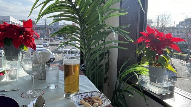 店に入ると店の内側の席には泣き叫ぶ幼児をフィーチャーした家族連れ。窓際の席には前の客が帰った直後なのか食事後の食器類。それが片付けられているところへ、いつもはディナータイムに見かける常連さんの家族連れが来店。新兵器のレースのカーテンも出動して万全である。日曜日を営業日にしたのは成功した模様。
