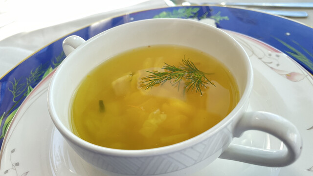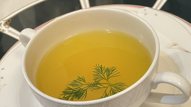 チキンソテーに添えてあった、カリカリのローズマリー、タイム、ディル。ローズマリーは少し塩味でも付けたら良い酒のつまみになりそう。ルッコラ、ミント、フェンネル、カモミール、セージ。パセリはキアゲハに食い尽くされてしまったか^_^。ショウガ、ネギ、ミツバ、ゆず。香る野菜は脇役の事が多いけど、スープでは微量でどどんと主役になる事がわかった。