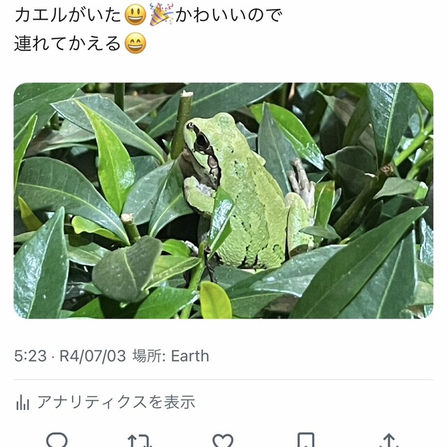忘れもしない、ニホンアマガエルのリカをこのクチナシの左端あたりで見つけて連れて帰ったのは2022年の7月2日の24時過ぎだった。手の中でモゴモゴしたり液体を噴射した感触を覚えている^_^