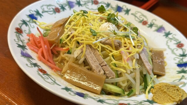 今日もごま風味の冷やし中華の細切りきゅうりと細切りチャーシューがバンバンジーを思わせる。錦糸卵は他のメニューでは見ないので、冷やし中華専用だろうか。通年で出来そうなのに季節限定なのはこれの準備のためかも?