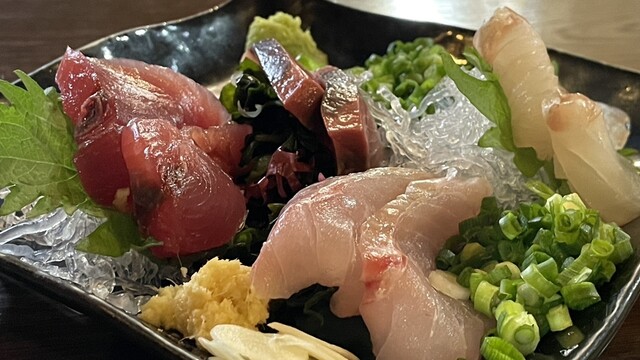 刺し盛りを載せて来た皿は久しぶりに左上に三日月の浮いてるやつだった