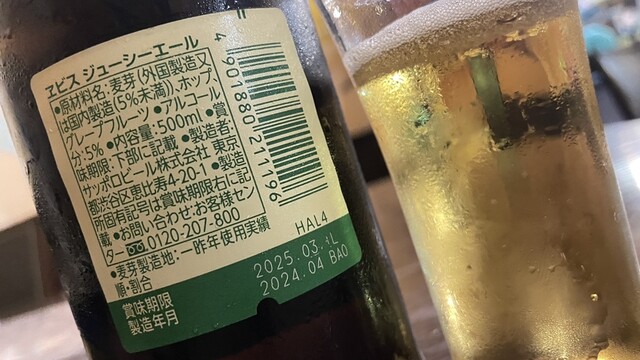 お昼に行ったとんかつ屋さんには、エビスのジューシーエールが900円!というお札があった。ここではキャンペーンで580円!580円とお得です。アルコール専門店の強みかな^_^。餅は餅屋、トンカツはトンカツ屋、酒は居酒屋。