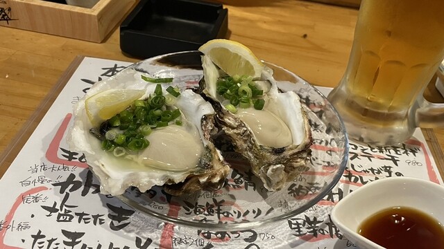 カウンター席で冷蔵ショウケース越しに受け取った生牡蠣がおこす磯の香りを肴に飲む^_^。