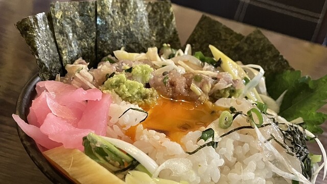 なめろうがあるので今日も海鮮丼を自作する。あー、しらすの釜揚げがあったらなー^_^。