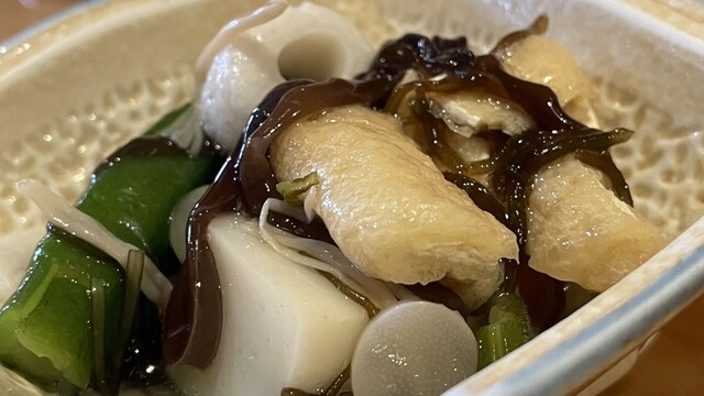 このところ満席が続いて居たこの店も客はまばらで静かめ。両隣のテーブルには見かけない熟年のご夫婦が日本酒の熱燗を連チャンして居てなんだかイイ^_^。真似して久しぶりにヌル燗を注文。自分の学部学生時代までは日本酒は燗して飲むものだった。酒に一級とか二級があった時代。越乃寒梅がパラダイムを変えた。冷や酒が冷酒と呼ばれるようになりデフォルトになった。82年頃に当時松見公園前にあった居酒屋で初めてそれを飲んだ時のインパクトを今も覚えて居る。