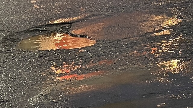 傘をさしたものかどうかと言う霧雨。コートを着たものかどうかと言うやや肌寒。今週はずっと厚い曇りと雨が続いてビタミンDは不足気味少し気分も滅入り気味。明日はようやく晴れるみたいだけど、そうなると暑さ対策と言う事になり、体調維持には百薬の長という事になる。少し億劫だけど健康のためだと出かける。店の前に来ると期待通りの水たまりが^_^。