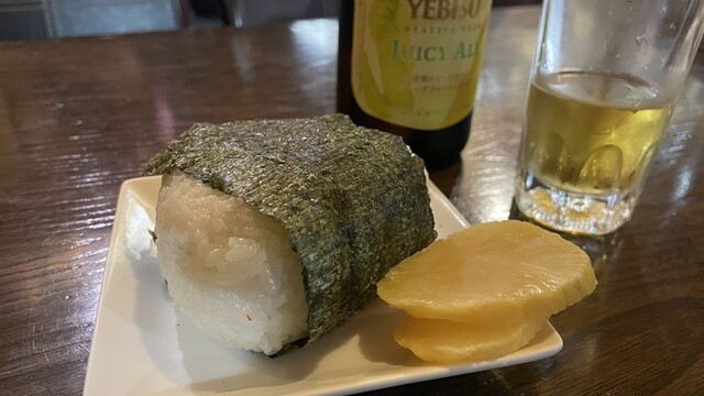 その後に入って来たご夫婦も飲んで食べて会計して帰り、入れ替わる店内の景色を眺めながら、お茶漬けから急遽ダウングレードしためんたいこおにぎりを食べながら帰る準備をする。