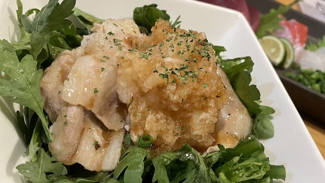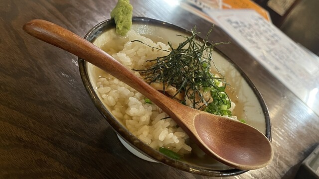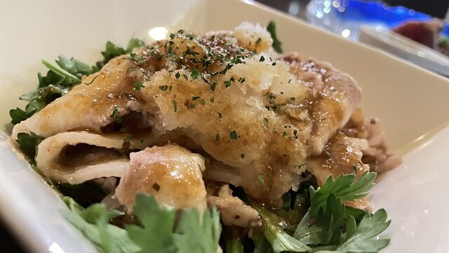 ここの豚シャブは豚の脂やクセをあまり落としてないので野生的な濃い味がする。その豚肉の強いクセと春菊の強い香りがぶつかり合うのがスリリングと思うけど、おろしが割って入って、拍子抜けするような和解^_^