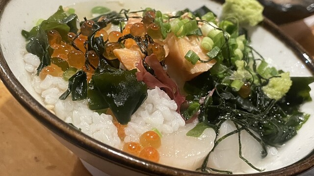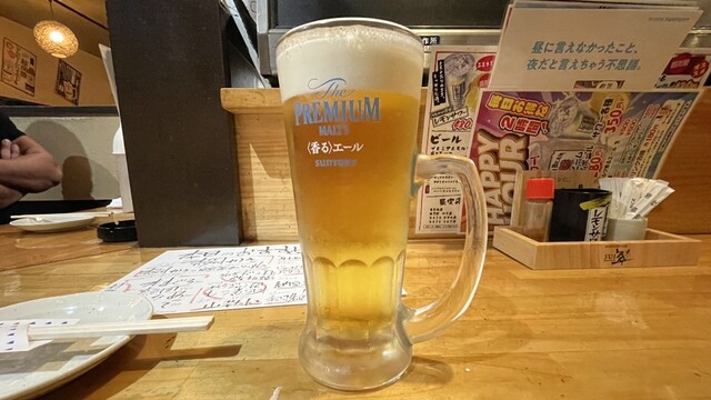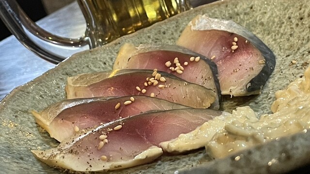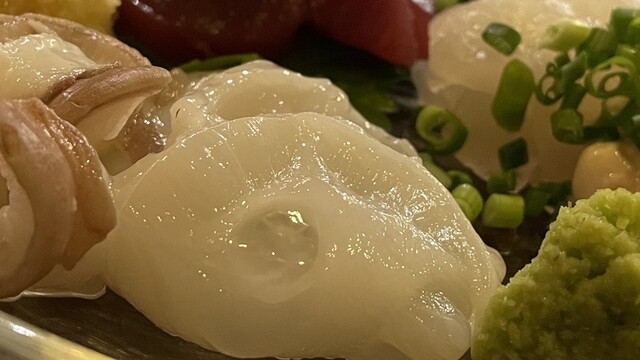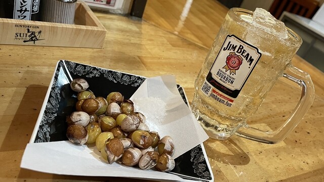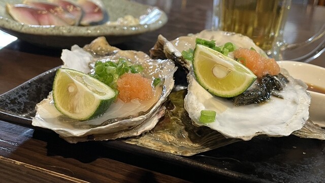 蒸しカキに塩辛トッピングというとっぴなメニューがあったのでつい注文。んー… 別に悪く無いけど、特段の相乗効果を感じない^_^。この店で見た組み合わせの妙は色々あるけど。