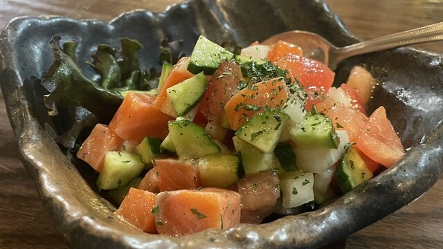 前回はナスの一本漬けが佳かったけど、今日のおしんこはフルコースと言うかオールスターキャストというか七福神乗合バスな感じでやって来た。テーブルに到着した時に白菜の匂いがフワーッと来て、食べ始めたらいぶりがっこが主役を主張する。飴色のパリパリらっきょうを食べたらカレーが食べたいような気がする悲しい条件反射^_^。