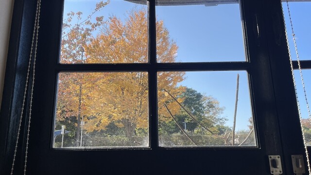 店の前の通りの向こうの街路樹はかなり色付いて、葉も落とし始めている。店の側の歩道沿いに何年か前に植えられたらしい幼い街路樹が少し大きくなって、春には元気な新葉に面白い花を咲かせていた。けど、紅葉はしょぼくてみすぼらしい^_^。確か山法師という木だ。