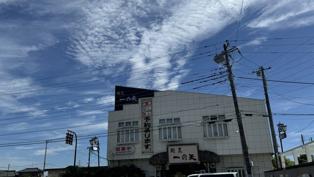 玄関を出て観ると、台風10号が去って澄んだ空に、15km先の筑波山の女体山山陵に並ぶアンテナ群がすごく近くに見える。天久保あたりで食べるつもりで東大通りに出たら、通りの先のV字型の秋の空に浮かぶ雲があまりに素敵で、絵葉書のような配色で緩やかに曲がりくねるミツバカエデの通りを北上して一ノ矢まで来た。駐車場に観光バスが停まっていてこれは混んでるかなといやな予感。
