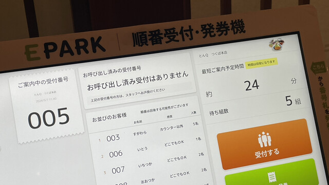 近くの歯医者さんの帰りに通りかかったので。ここに来るのは2年ぶりくらい?11:40に来たら待ちが5組。局所麻酔の痺れ感もまだ残っているのでゆっくり待つ^_^。ここはもともとシャキシャキした接客が特徴だけど、システム化されてからさらに効率化した感じ。
