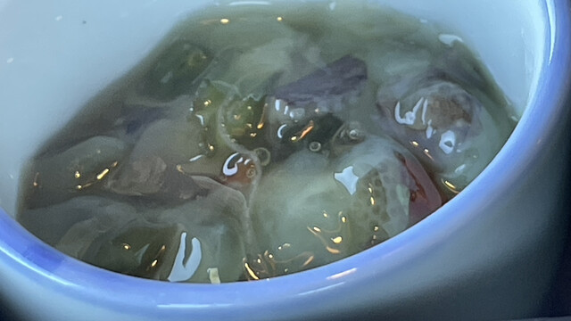 どの料理もとびきりでは無いけど普通に美味しく、不味いものは無い。そう言う印象は1回目から変わらない。ただ今日は、刺身についているクラゲの酢の物の酸味がツンと強すぎる感じはした。