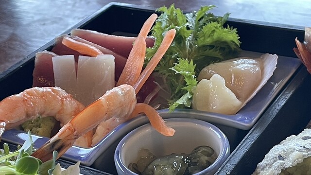 去年の5月から月イチくらいで来て、毎回松弁当を食べた。全体の構成は変わらないけど、素材、特に天ぷらと刺身は季節によって変わる。行く川の流れは絶えずしてしかももとの水にあらずだ^_^。もう少ししたらふきのとうとかタラの芽の天ぷらが出るかも知れない。
