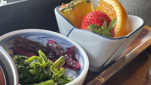 もうタラの芽やふきのとうの季節も終えたのか、天ぷらにはキスみたいな白身魚が飛び入り参加してたくらい。代わりにお新香の脇に菜の花のお浸しがあって、春らしい味を提供していた。