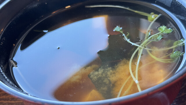 松弁当が来たので、足りないものがないかまず確認、ヨシw。ぱっと見にまず、天ぷらがいつものぼってり厚着でなく、素人臭くない。素材のカラフルな色が透けて見える。みそ汁から貝のような味がして美味しい。焼肉はちょうど良い焼き加減。刺身もOK。今年5回来た中で最高の出来だった。
