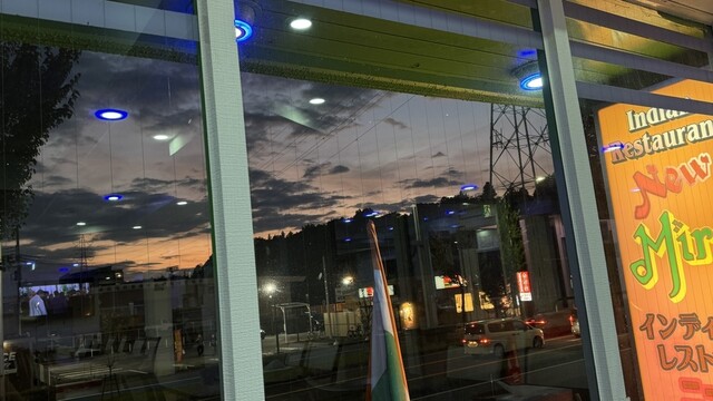 1990年前後のビリヤードブームの時はこのビルの1、2階はお酒の飲めるビリヤード場だった。ブームが去った後、店の外に野晒しにされている廃棄待ちのビリヤード台たちが痛々しかったのを覚えている。それから10年くらい、半地下みたいな1階の借り手が何度か変わった後にインド料理の店、ニューミラが入った。2階はずっと、筑波大学の芸術関係者のアトリエ兼ギャラリーみたいな感じだった。開店当初は小さかったミラちゃんも時々店に姿を見せていた。お店は繁盛してあちこちに増え、やがてこの建物全体がミラビルになった^_^。何年か前にお店が2階に移ったのは気付いて居たけど、改装後今日初めて入って、その景色の良さに驚いた。東大通りを見下しながら食事出来る店って、ここだけかも知れない。