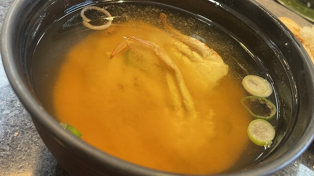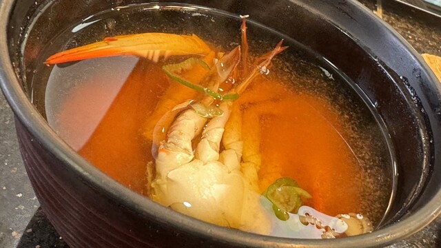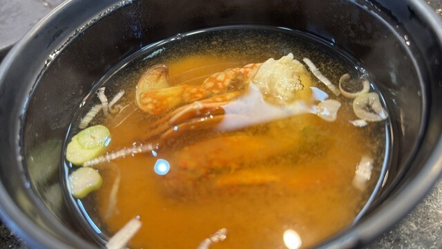 ランチタイムサービスのみそ汁は鯛のあら汁。品の良さそうな脂が浮いて見るからに美味しい^_^。飲んでいたらピンクの鮭の身も入っていて味の飾り付けをしていた。