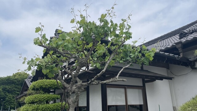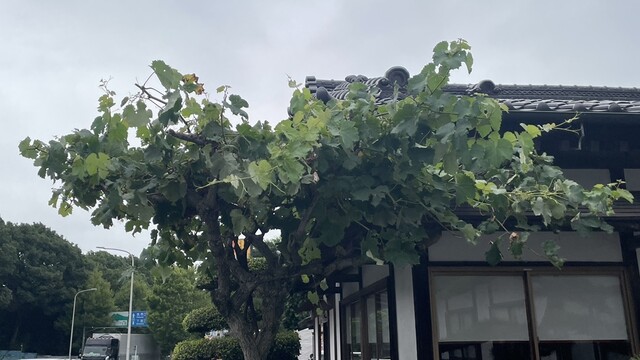 食べ終えて少しうとうとした後会計して栗の花の香る表に出て車に戻る時、気になる木をしげしげと観て、あーこれはブドウの木じゃね?と思い写真を撮って鑑定アプリに見せたらそうだと言う。うなぎ屋にブドウの木。意表を突いてる^_^