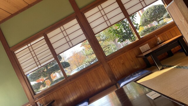 一番テーブルの壁にもたれて道の向こうのカエデを観ると、日に透けた赤や黄色の葉がハラハラと舞って落ちる。次に来た時には最後の一葉も残っていないだろう。主役の紅葉を眺めながら、やがてやって来たうな重を頂く。いつもと変わらぬ味。問題なし^_^