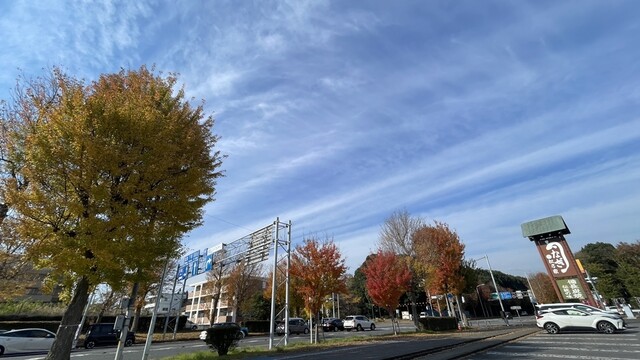 東大通りのカエデの紅葉は一気に進行中、先週来た時にはようやく始まった感じだった松乃家周辺も既に終盤に入った感じで、侘しさもただよう。一方で松乃家前で交差する平塚線のイチョウは真っ盛りという感じ。最近、学園線の街路樹もイチョウだと気付いた。北大通りはトチ。南大通りは未確認。なんにしてもつくばの道はそれぞれの街路樹で彩られ、特徴付けられる。どこそこの街の象徴のなんとか並木みたいな通り一遍なものでは無いのだ^_^