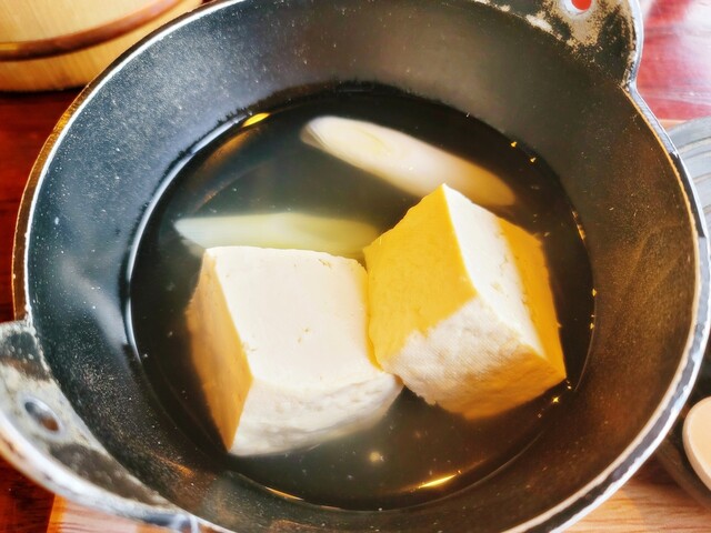・湯豆腐、シンプルな味わいとぶりっとした食感が朝食にぴったりでした。