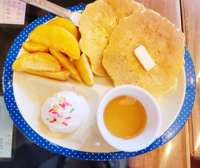 ・パンケーキは、薄めの生地なので幼児でも手でもってパクパクと食べれます。