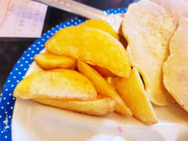3-4歳向け:KIDS パンケーキプレート(ミニパンケーキ(バター,ホイップ,はちみつ)+ポテト+ジュース(アップルorオレンジ)(350円)