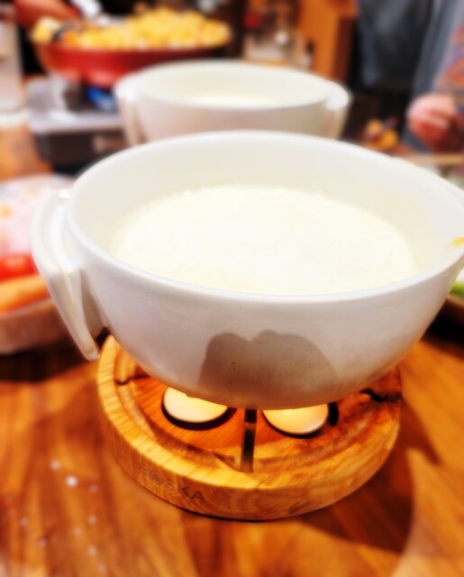・2日目夕食は、パエリアとチーズフォンデュなど。