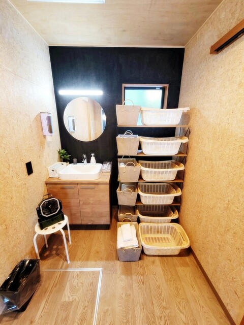 ・さらに、電子レンジや大きめの冷蔵庫、食器類、コーヒーメーカー、ミキサー、ホットサンドプレート、ケトル、折畳椅子、かなりの量のウェルカムドリンク…もう何も持っていく必要がないほどに充実した空間が用意されています。