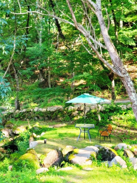 ・そして、休憩椅子から見える大自然の景観、鳥のさえずり虫の声、木々の揺れ動く音。