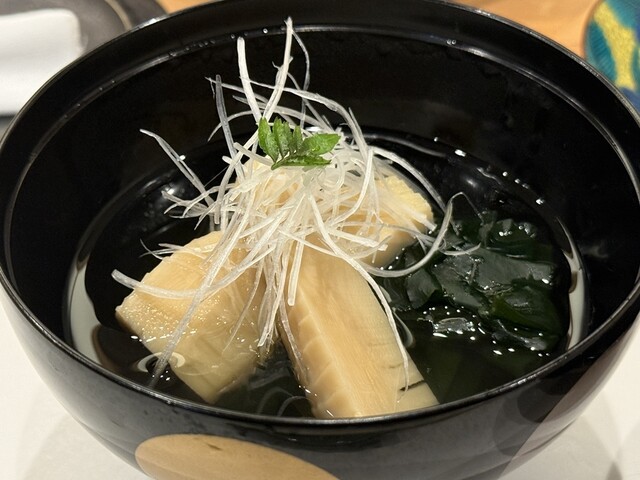 季節のお椀である若竹煮は、筍の香り高さが際立ち、わかめと白髪葱、木の芽が新春らしさを引き立てていました。