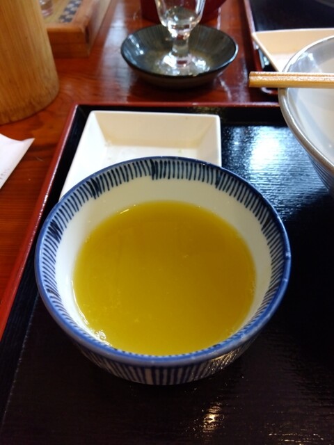 つけ汁もちゃんと出汁引いた美味しいモノですので無駄にするのは勿体なく、少な目御に注文致しました。ですが、蕎麦掻にもそば猪口に入れられたつけ汁が付いてきますもので、結局蕎麦搔きを頂いた残りの汁も蕎麦湯で薄めて頂きました。