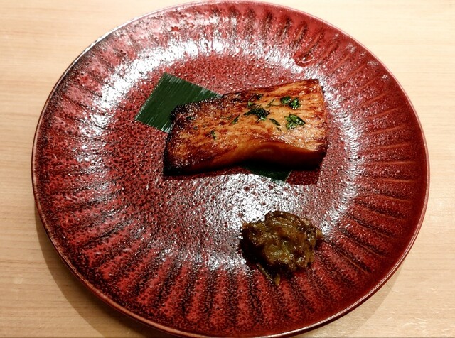 他のマグロと比べると舌触り食感が柔らかいです。マグロの旨味が口の中で広がり佃煮の風味と行者ニンニクの食感が面白い組み合わせで佃煮が強くないから全体が纏まりバランスが良かったです。