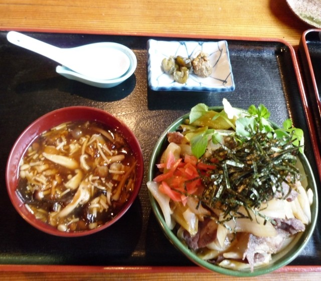 熊肉丼もきのこ汁つき