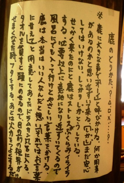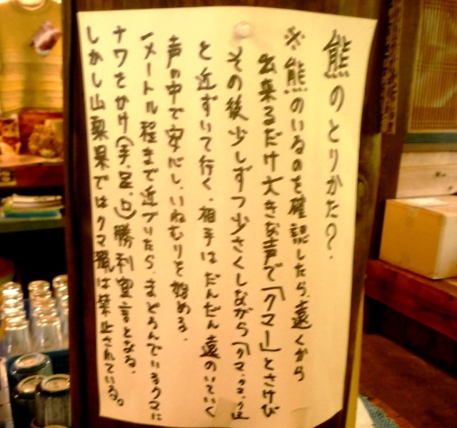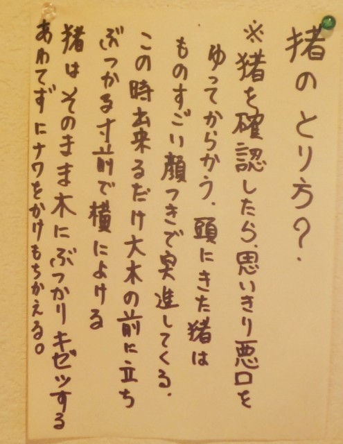 随所に貼り紙された「熊のとりかた」「猪のとりかた」「鹿のとりかた」の説明が面白かったので