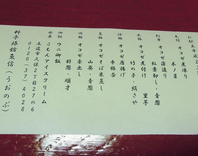 しかし、店のHPを調べても、オコゼづくしのコースは見当たらない。普通のコースの中にオコゼの料理が1,2品入るコースばかり。当店は料理旅館なので、宿泊しないと出してもらえない特別コースなんだろうか・・・でも宿泊は結構高いよなあ・・・などと悶々。