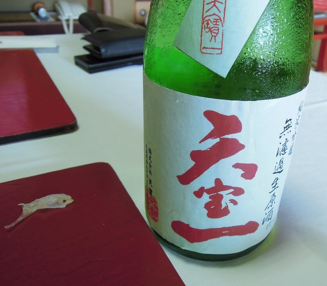 薄造りは、弾力ある白身もさることながら、添えられた皮や内臓が良い。コリコリと噛みしめるごとに旨みが出てきて、そこに冷えた地酒「天保一」を流しこむ幸せといったらアナタ。
