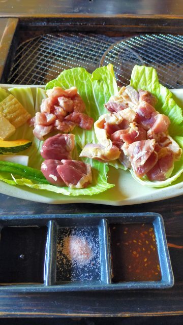 地鶏セット地鶏・せせり・馬汁・おにぎり・キムチ・野菜