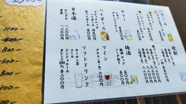 各種ドリンクメニュー