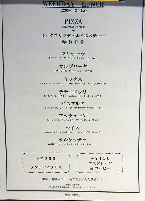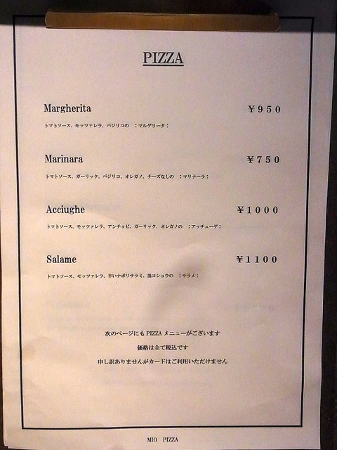 この2週間で、11時半だった開店時間が12時になり、休みが月曜日になり、ピザメニューが増え、値段も少し変わっていた。