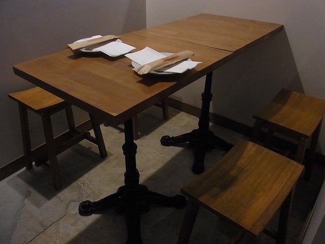 奥に一つだけ小さな4人がけのテーブルもある。