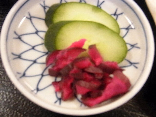 味噌汁と漬物は特にどうってことはないが、葉唐辛子の佃煮はおいしかった。