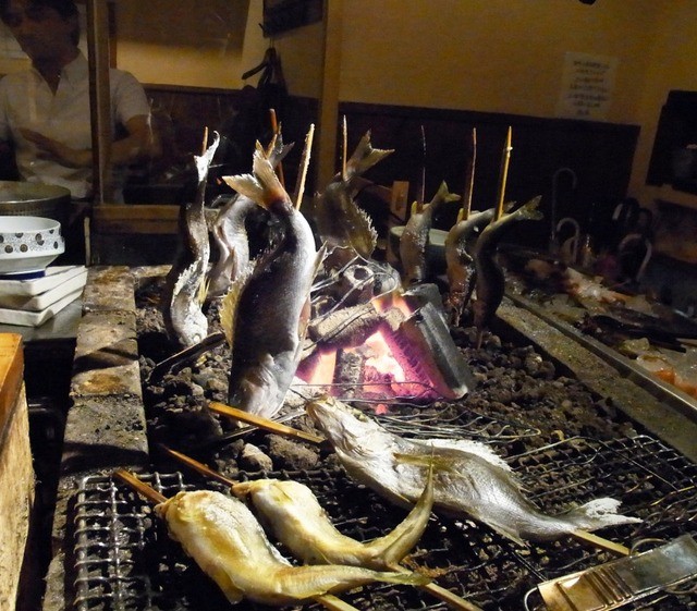 入ったら、いきなり目の前に赤々とおこった炭火の炉があり、ちょと面食らう。