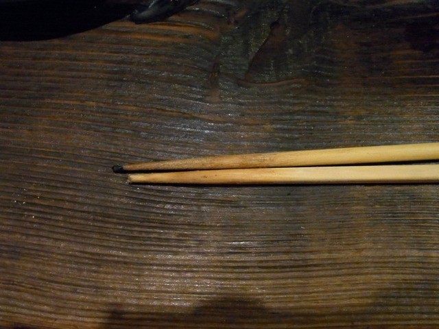 使い回しの木地の箸が、ちょっと古かった。