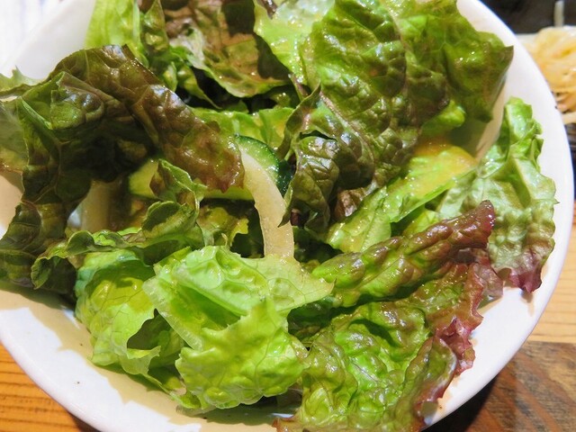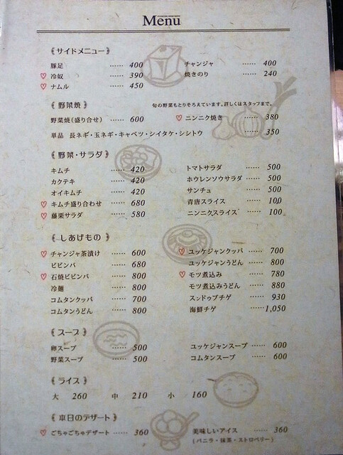 ランチの定食には、肉の他に ミニサラダ、スープ、そして少量だがナムル、キムチ、果物も付く。